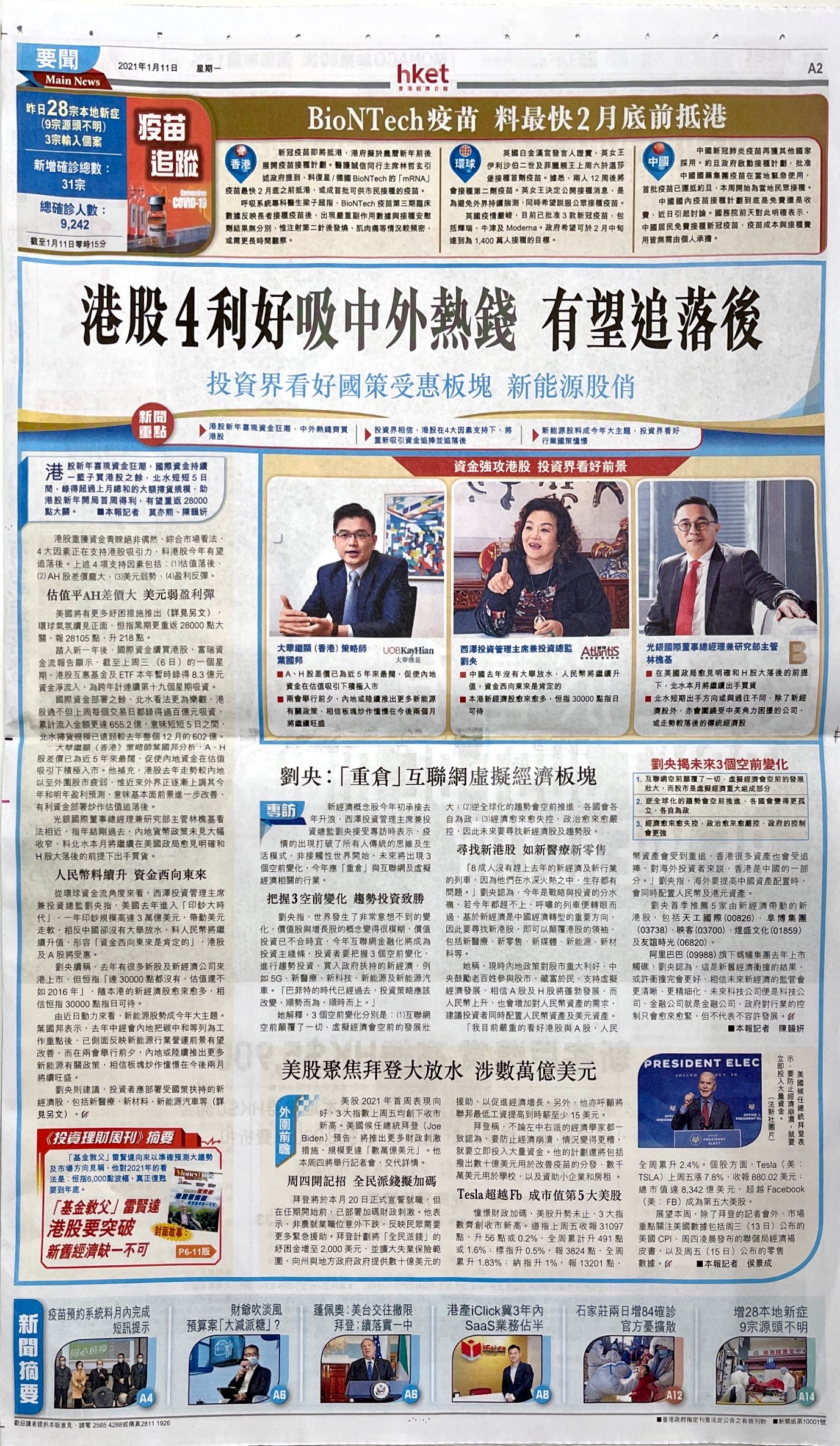 港股4利好吸中外熱錢 有望追落後 - 投資界看好國策受惠板塊 新能源股俏HKET / 2021-01-11